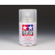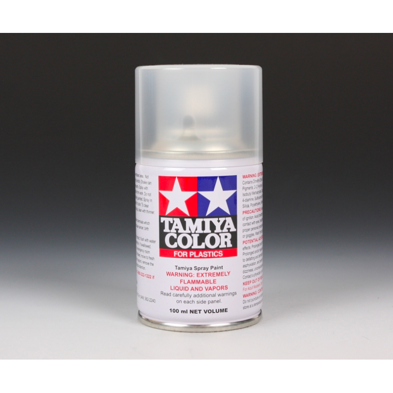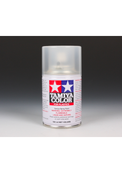 Farba w sprayu jest bardzo przydatna do malowania dużych powierzchni. Farba Tamiya jest syntetycznym lakierem, który utwardza się w krótkim czasie. Puszka zawiera 100 ml farby, co wystarcza do pełnego pokrycia dwóch lub trzech karoserii samochodów w skali 1/24. Farby w sprayu Tamiya nie reagują na farby akrylowe czy emaliowe; dlatego po nałożeniu ogólnej warstwy bazowej można również malować szczegóły za pomocą emalii lub farb akrylowych. Farby charakteryzują się doskonałą przyczepnością, są bardzo wydajne i trwałe. Poza tym posiadają szereg zalet do których zaliczyć należy: łatwość aplikacji, dobre krycie, możliwość stosowania na różnych powierzchniach od ceramiki, przez drewno, metal, tworzywa sztuczne, aż po kamień i beton. Pomalowana powierzchnia jest również odporna na wilgoć. Już przy jednej warstwie farby w sprayu można uzyskać taki sam efekt, jak przy nałożeniu pędzlem kilku warstw. Warto oczywiście zadbać o odpowiednie przygotowanie powierzchni – pozbyć się warstw tłuszczu, wody czy kurzu. Równie istotne będzie malowanie w odpowiedniej temperaturze zawartej w przedziale 15°C do 25°C oraz umiarkowanej wilgotności np. poniżej 85%. Należy również unikać malowania w bezpośrednim świetle słonecznym. Semi Gloss Clear to pół matowy, pół błyszczący, akrylowo celulozowy lakier służący do finałowego wykończenia modelu do tzw. satynowej powierzchni. Produkt ten cechuje duża twardość i odporność powierzchni, co znakomicie zabezpiecza model. Najlepiej jest, jak zresztą wszystkie specyfiki typu varnish nakładać kilkoma cienkimi warstwami. Uzyskaną w ten sposób powierzchnię będzie cechowała satynowa powierzchnia, charakterystyczny dla niektórych sprzętów lotniczych i lądowych. Satynowa powierzchnia modelu jest najczęściej finalnym wykończeniem po uprzednich matowych lub błyszczących varnishach, które nakładane sa w celu użycia wyrafinowanych technik modelarskich np. wash. Matowa powierzchnia charakteryzuje się dużą chłonnością kolejnych warstw farby, błyszcząca najmniejszą chłonnością.