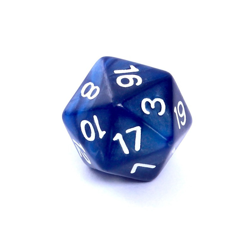 Kość K20 - perłowa ciemnoniebieska (złote cyfry)