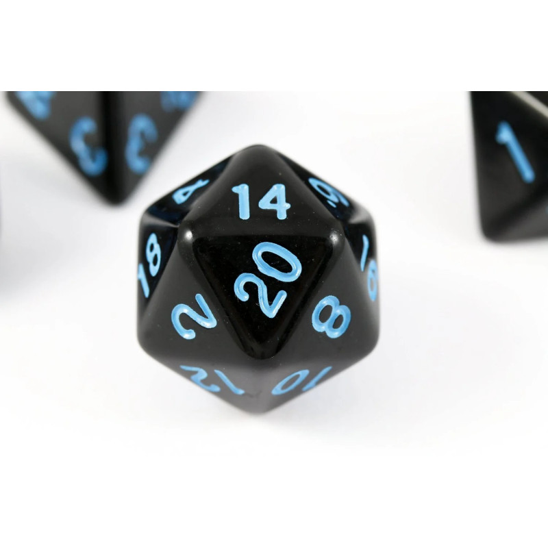 Kość K20 - matowa czarna (niebieskie cyfry)