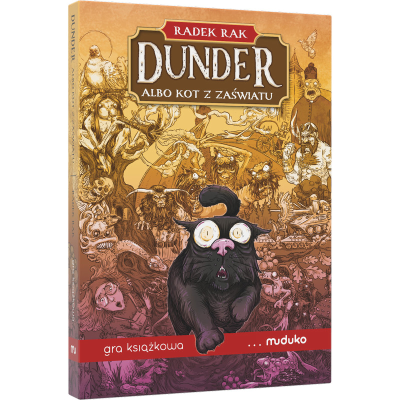 "Dunder albo kot z zaświatu" to zwariowana i magiczna przygoda mówiącego kota pewnej nowoczesnej wiedźmy, który - niezbyt mądrym żartem - uruchamia lawinę koszmarnych zdarzeń. Gracze-czytelnicy zdecydują, jak potoczy się ta historia, wybierając drogi, którymi ma podążyć Dunder, by wyplątać się z trudności.