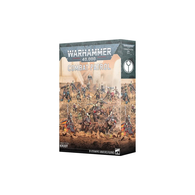 This packed box is the perfect way to start a new Kroot-themed T'au Empire collection – or expand an existing army – and save money compared to buying the kits individually. The army is led from the front by a Kroot Lone-spear sitting on the back of a lizard-like Kalamandra. Behind him charge Krootox Rampagers, an elite melee line-breaker unit. The core of the force is composed of a Farstalker Kinband, deadly hunters and versatile warriors capable of taking and holding vital objectives. Supporting the force is a Krootox Rider equipped with a heavy weapon. These 17 multipart plastic miniatures represent a complete T'au Empire force for use in tight, tactical Combat Patrol games of Warhammer 40,000. The rules for this Combat Patrol are available as a free download on the Warhammer Community website. This boxed set is only available while stocks last.