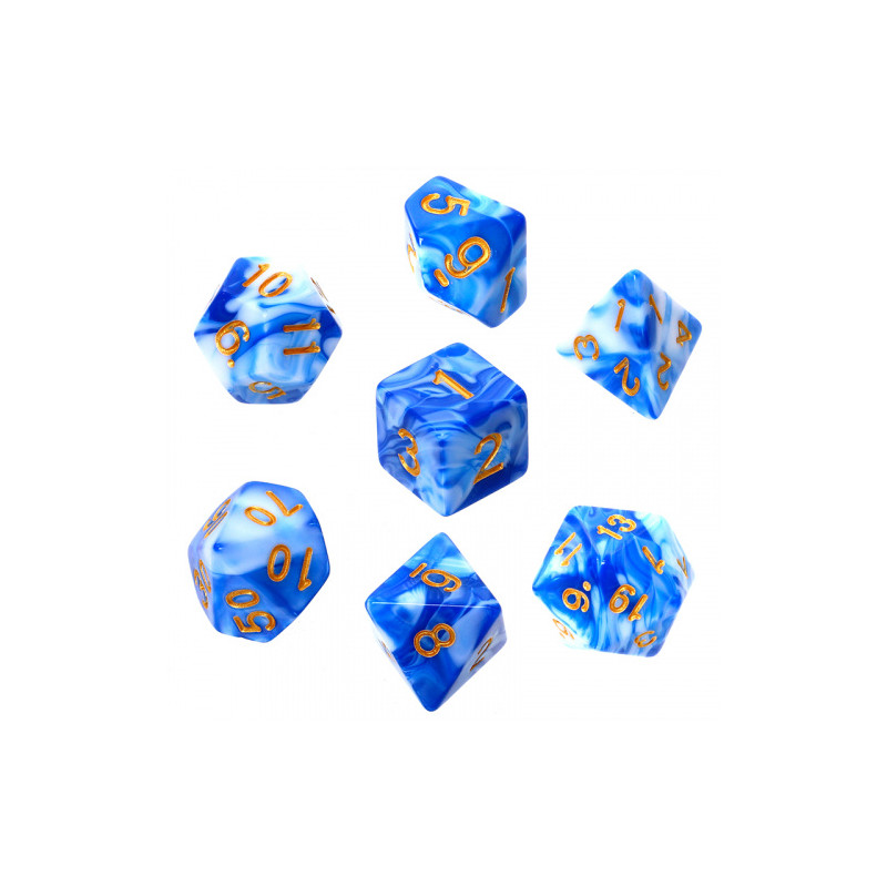 Zestaw kości REBEL RPG - Dwukolorowe - Niebiesko-białe (złote cyfry)