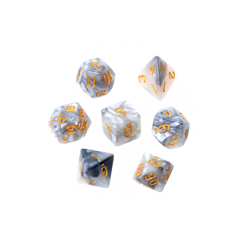 Zestaw kości REBEL RPG - Dwukolorowe - Stalowo-białe (złote cyfry)