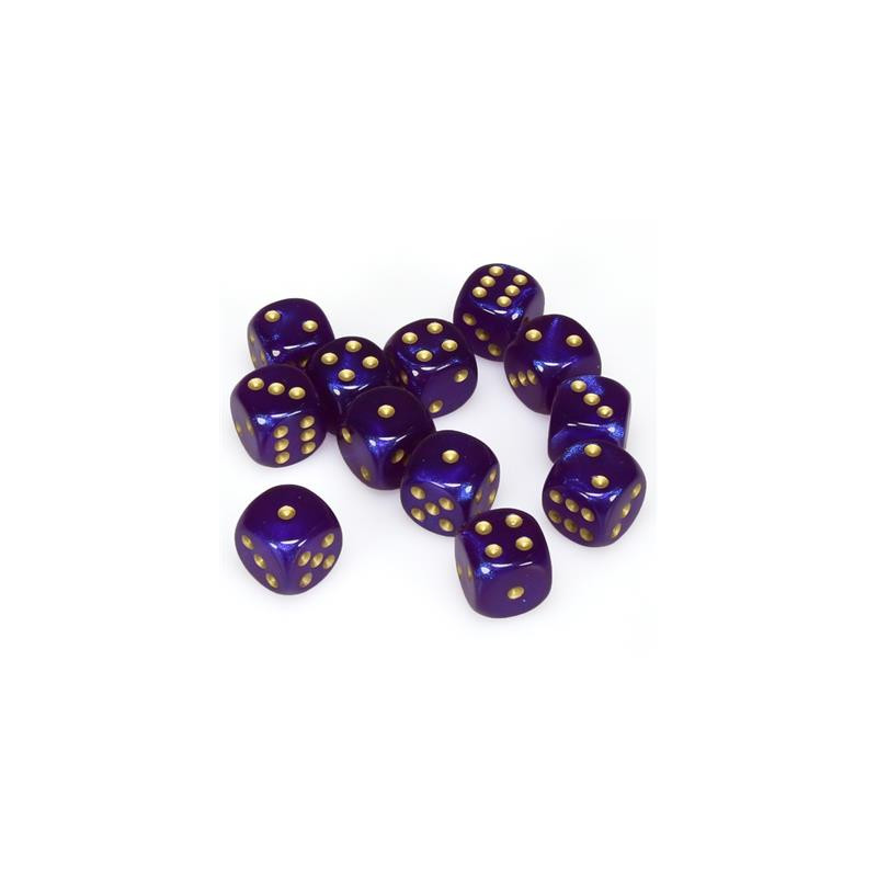 Zestaw kości Chessex Borealis 16mm d6 Royal Purple/gold Luminary Dice Block (12 dice)